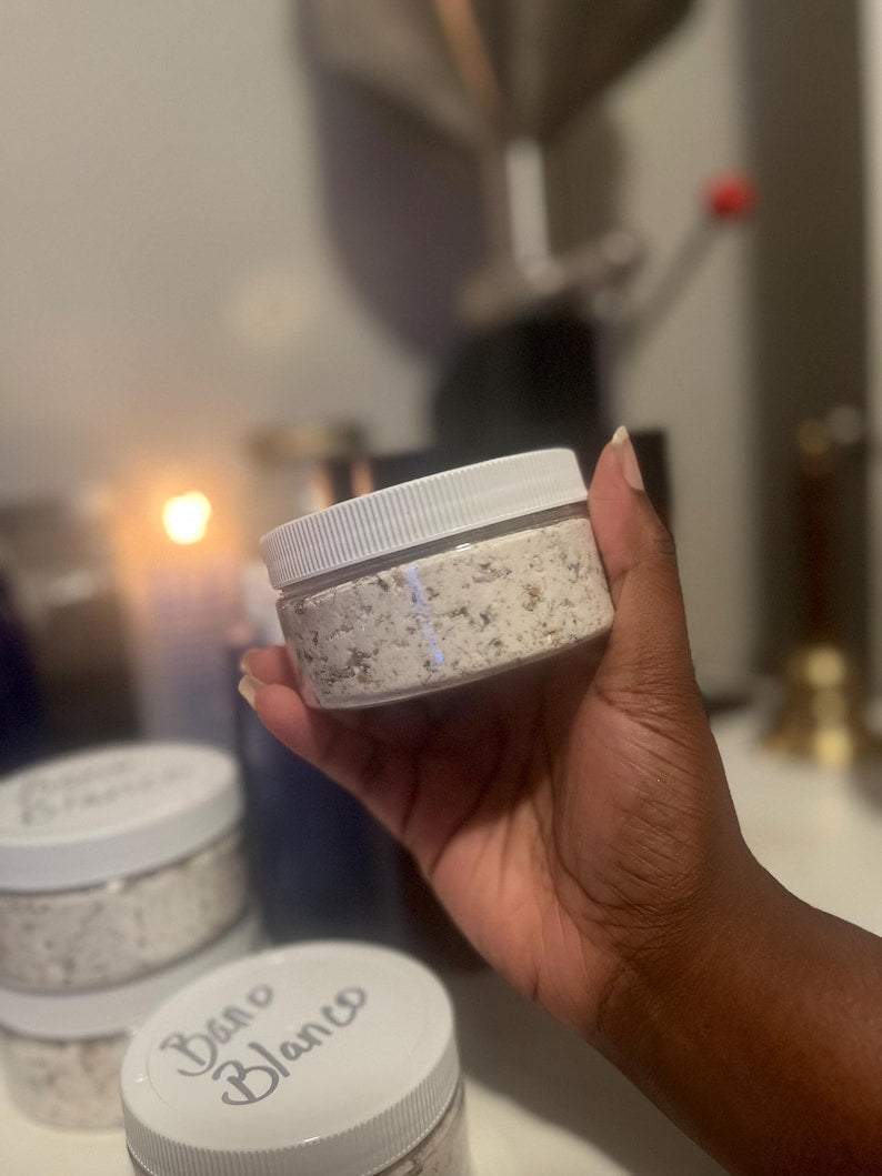 • Pour the desired amount of the white bath concentrate into a basin, tub, or bucket. Add room-temperature or cool water (you may add up to one gallon of water). Strain the herbs before use if you prefer a smooth bath.